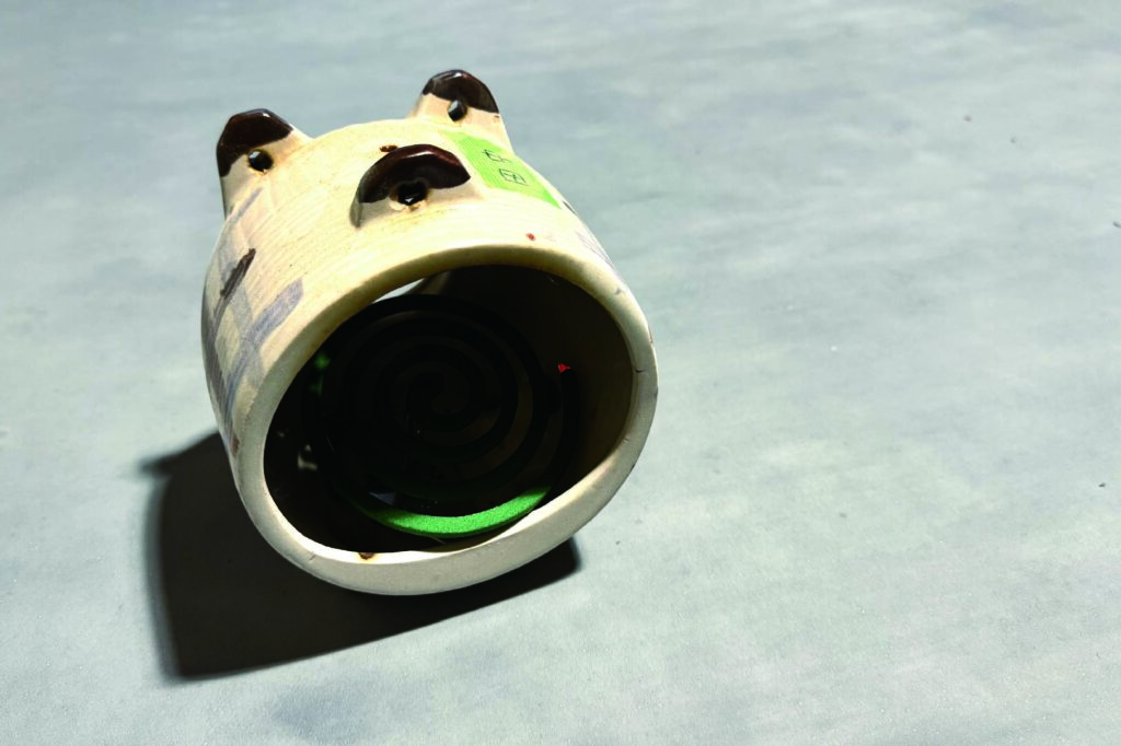 慌てていたら、現場の隅に蚊取り線香が置かれていました。