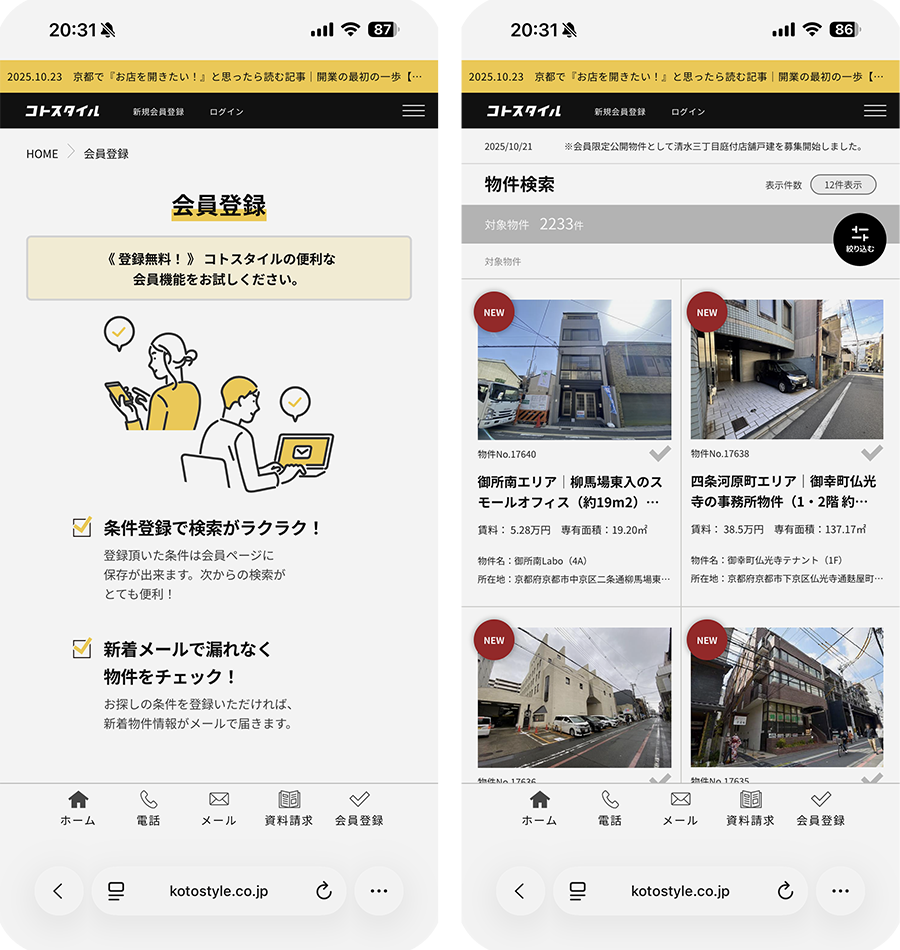 コトスタイルの会員登録(もちろん無料)をしていただくと、