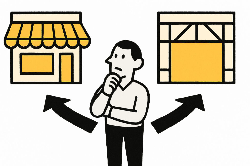 自分のビジネスモデル・資金力・スケジュール・地域特性を総合的に考えるべきです。ざっくり言えば、