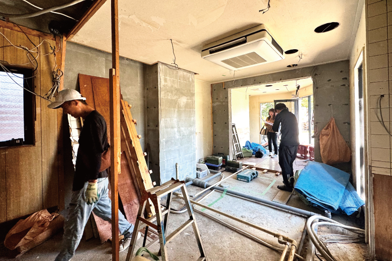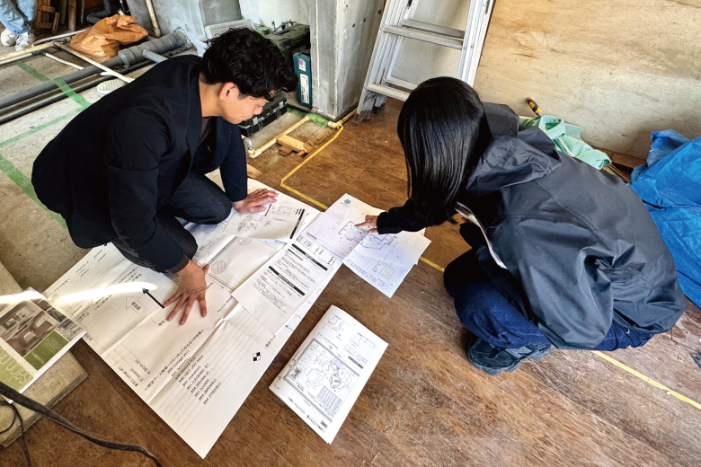 現場では多くの職人さんが入れ替わりながら、それぞれの工程をつないでいきますが、僕たちが間に入り、話題をつなぎ、関係をつくることで“チーム”ができていく。こうして人がつながる現場こそ、いいお店を生む現場なんだと思います。