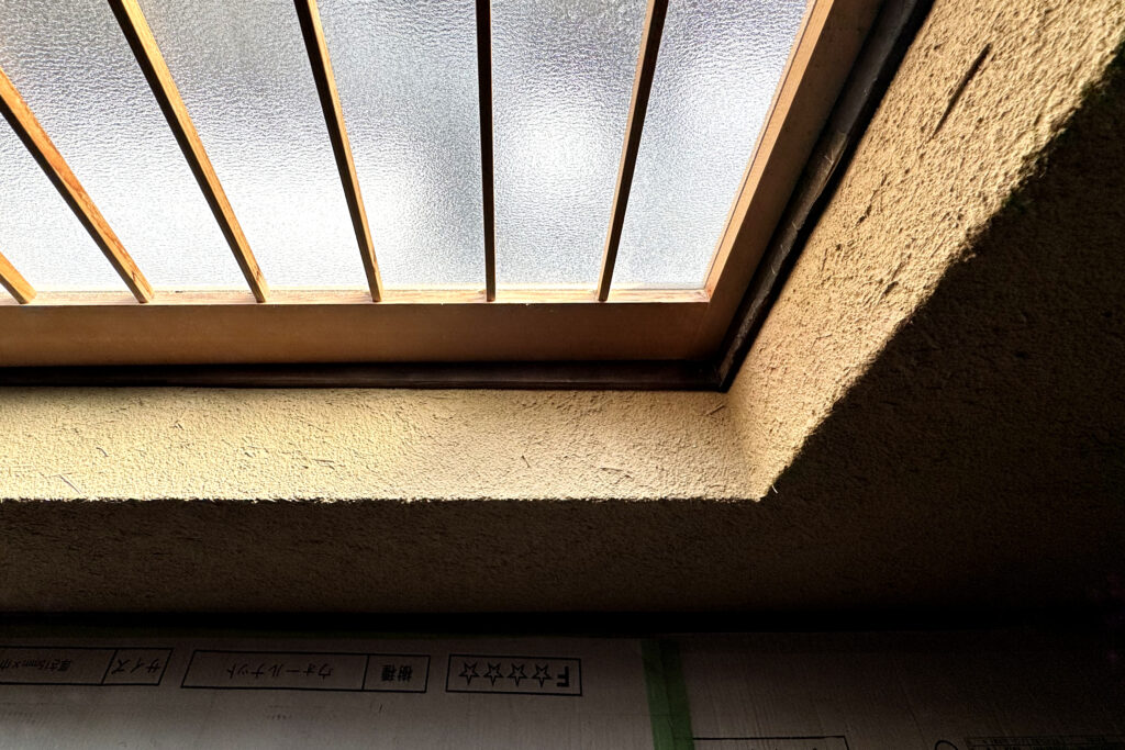 現場に入ると、壁の仕上げを進める左官屋さんの姿がありました。コテを滑らせるたびに、少しずつ表情を変えていく壁。その手元を見ているだけで、長年積み上げてきた経験と勘が伝わってきます。