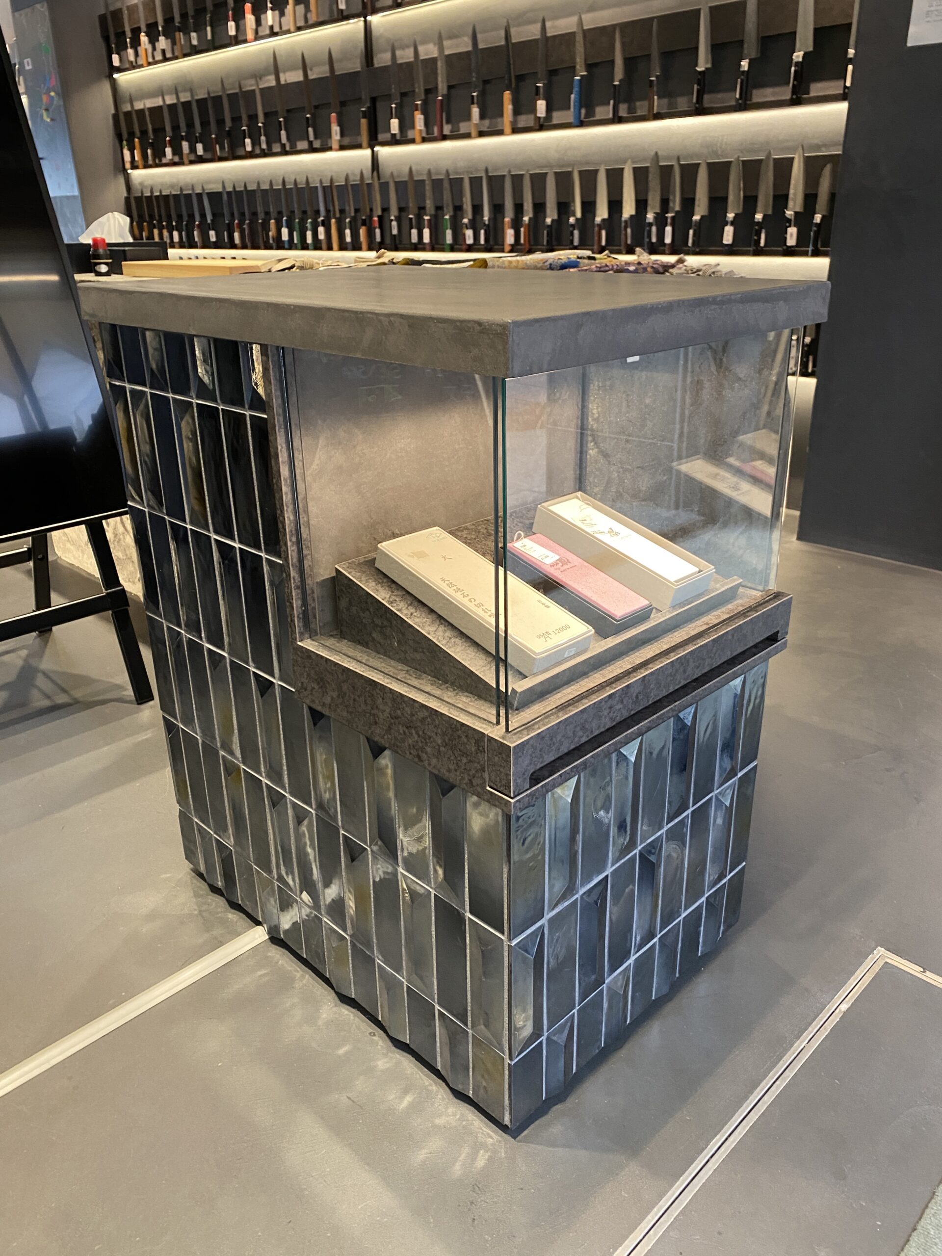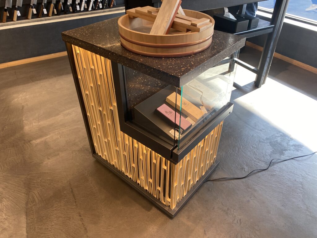 店舗での研ぎ作業や展示に使用する専用什器の制作をご依頼いただきました。