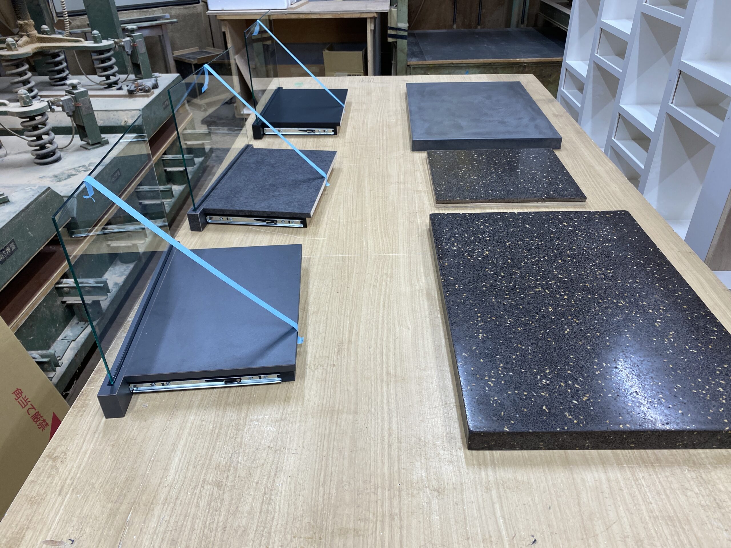 - 天板:ビールストーンの砥ぎ出し仕上げ