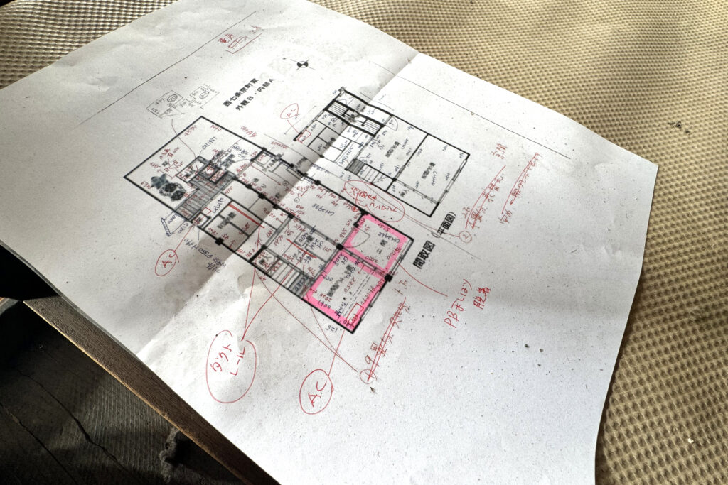 こうしたメモは、いわば現場での打ち合わせの痕跡です。どこに配線を通すか、どこにスイッチを設けるか。細かいことの積み重ねですが、使いやすさに直結する部分でもあります。