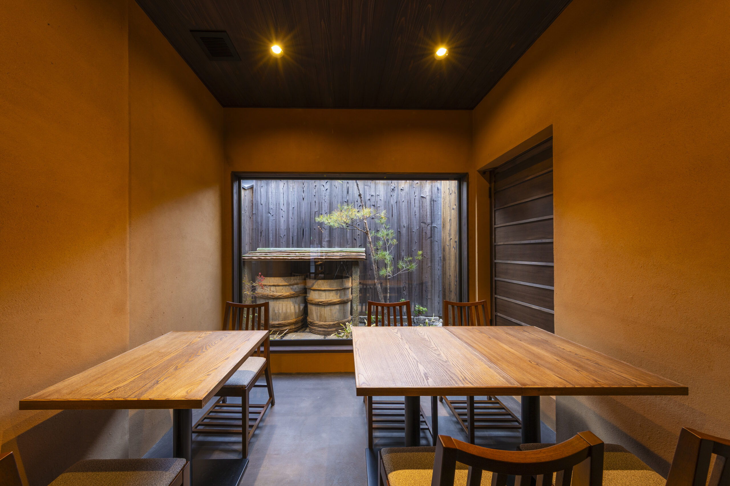 町家ならではの小さな庭には、東北・山形の味噌蔵で実際に使われていた味噌樽を庭の一部として配置。お店の背景やストーリーを感じていただける、静かな見どころとしています。
