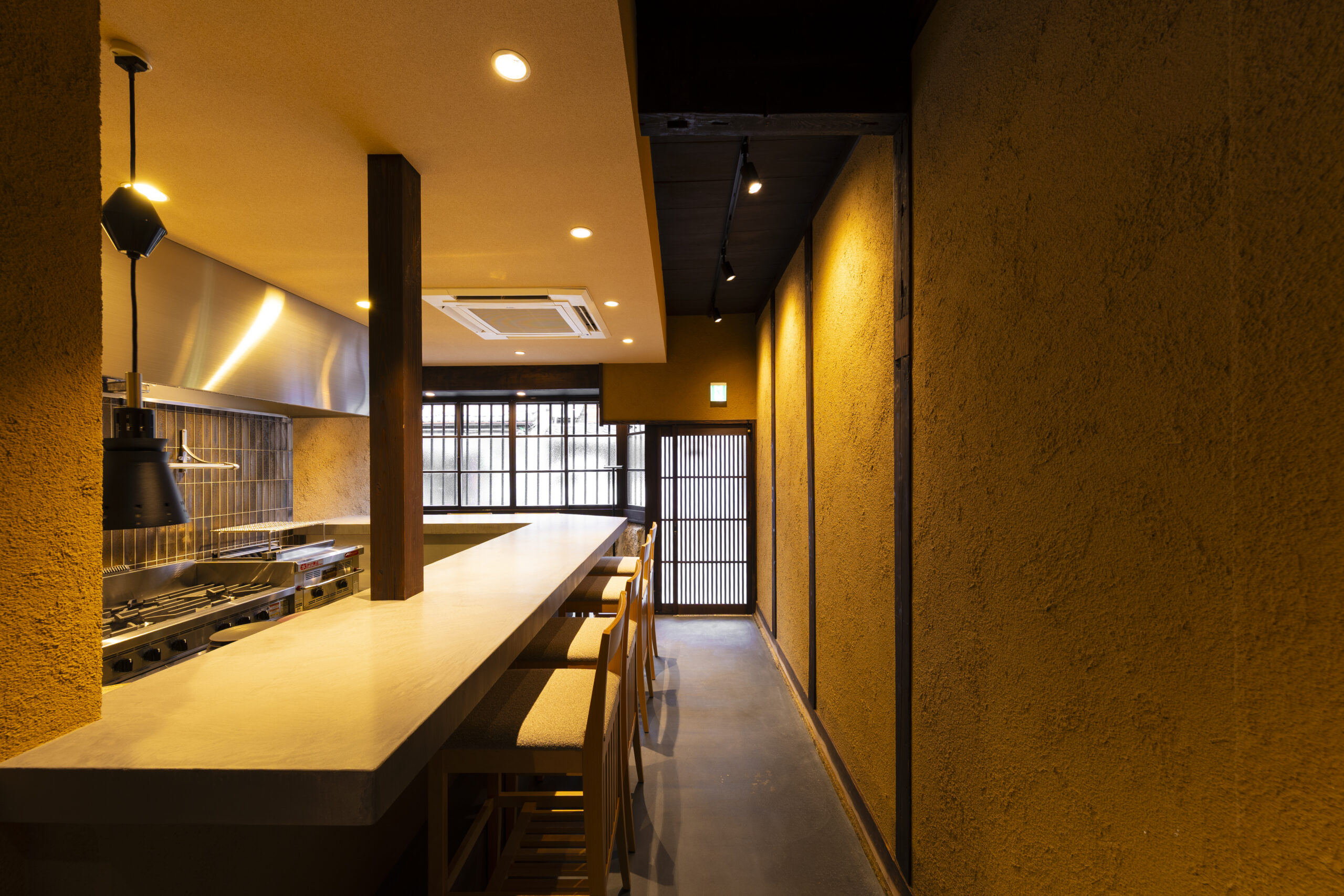 店から徒歩五分の六角堺町にある全国の味噌を販売する姉妹店「蔵代味噌」の味噌を味わえる場として、また、新たにお客様が体に良い醗酵料理と出会い、体験してもらう空間を作ることで、「味噌」という日本文化を残し、世界に広げて行きたい。そんな思いを形にするために、京都らしい町家空間を、古いものを残しながらお店としての機能も適える設えに整えていきました。
