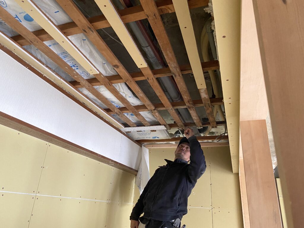 だからこそ、見えない床下でしっかりと木下地を組み、ガッチリと造作していきます。