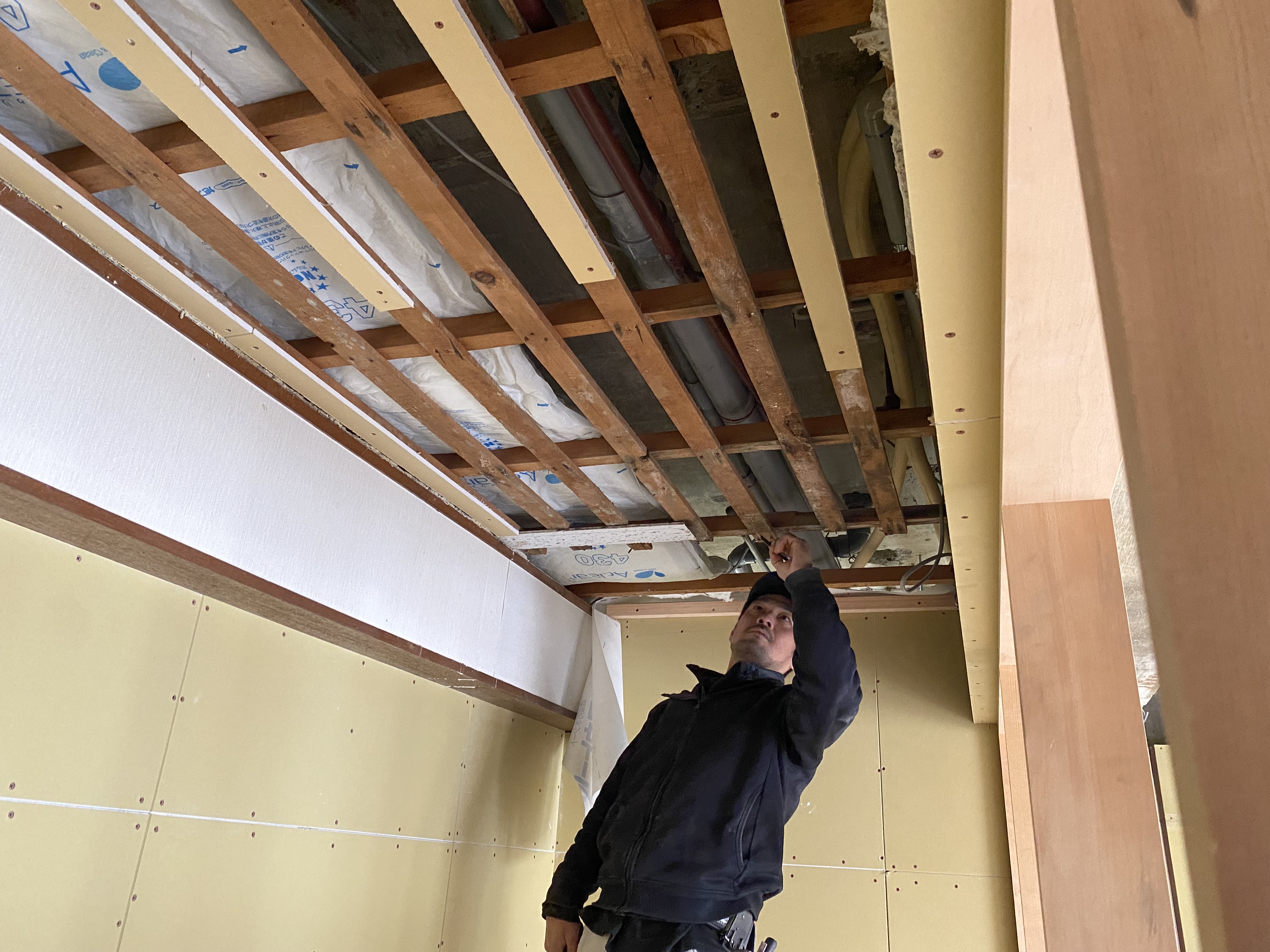 そして、すべての石膏ボードが貼り終わると——