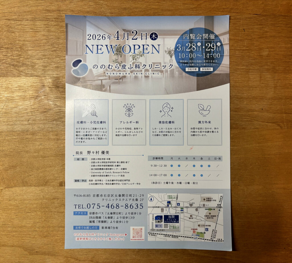 太秦クリニック改め、ののむら皮ふ科クリニック様の工事が、いよいよほぼ完了です。