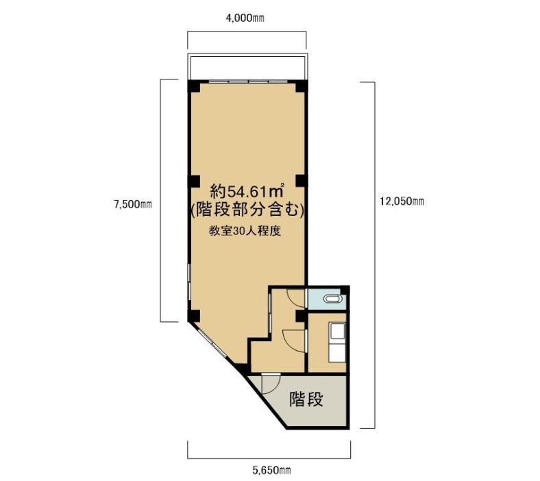 京都市営地下鉄烏丸線「北大路」駅から徒歩7分。 北大路通から少し入った静かな通り沿いにある、鉄骨造4階建てビルの2階部分です。 専有面積は約54.61m2。 教室や事務所などにちょうど良い広さで、長方形のレイアウトが使いやすい空間です。 室内にはトイレと流し台が設置されており、明るい印象のワンフロア仕様。 周辺は住宅と小規模店舗が混在する落ち着いた環境で、 静かな場所で事務作業やレッスンを行いたい方におすすめです。