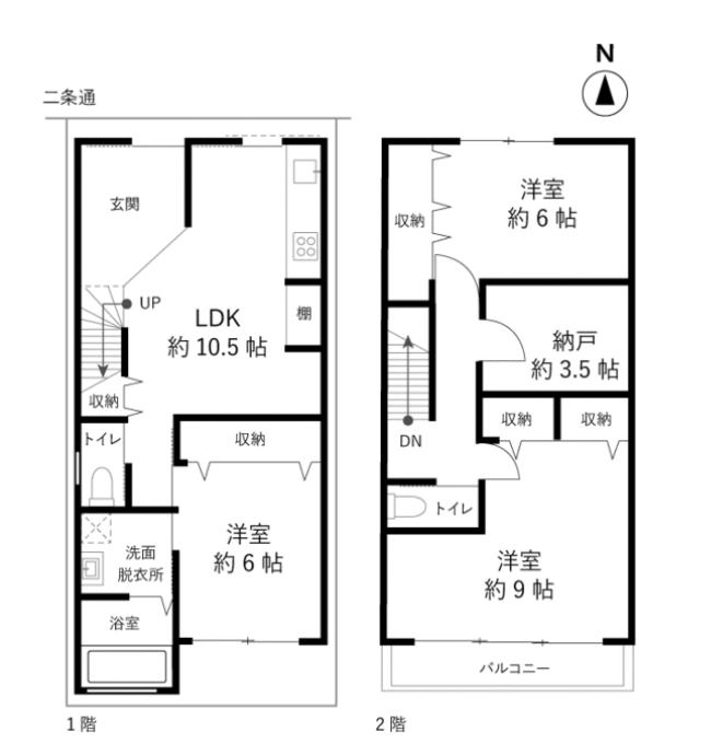 地下鉄東西線「烏丸御池」駅から徒歩9分、二条通に面した木造2階建ての貸家店舗です。 専有面積は約85.52m2で、1階はLDKと洋室、2階には洋室2室と納戸を備えたゆとりある間取り。 北向きながら採光も良く、店舗兼事務所やサロン、教室などさまざまな用途に対応可能です。 B・T別、トイレ2ヶ所、収納スペース、室内洗濯機置場など、使い勝手の良い設備が整っています。 現況は空室で、即入居が可能。 落ち着いた通り沿いで、生活と仕事を両立させたい方にもおすすめの物件です。