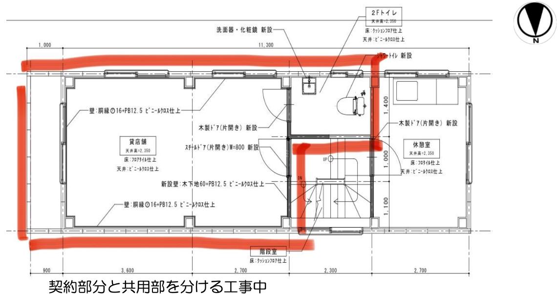大宮通五条の近くに位置し、阪急「大宮」駅から徒歩10分ほどの距離にある2階店舗事務所です。大宮通沿いに面しており、建物前の交通量も一定数あるため、事務所としてだけでなく小さなサービス業にも使いやすい立地です。 募集区画は約25.27m2の2階部分で、現在は契約区画と共用部分を分ける工事が進められています。細長い形状ながら、入口から奥まで見通しがよく、シンプルなレイアウトが組みやすい空間です。トイレは専有部分にあり、執務スペースと分けて使える構成になっています。 建物は1986年築の鉄骨造で、現況は空室。利用開始時期や内装の相談も可能です。必要な機能をコンパクトにまとめたい方や、初期の固定費を抑えながら事務所や小規模サービス業を始めたい方に向いた物件です。
