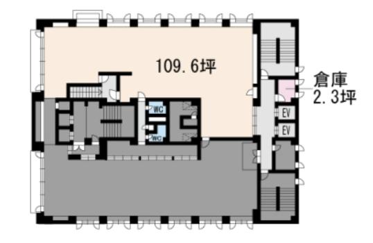 丸池藤井ビル 2階北|専有 109.6坪の広さが特徴の事務所区画