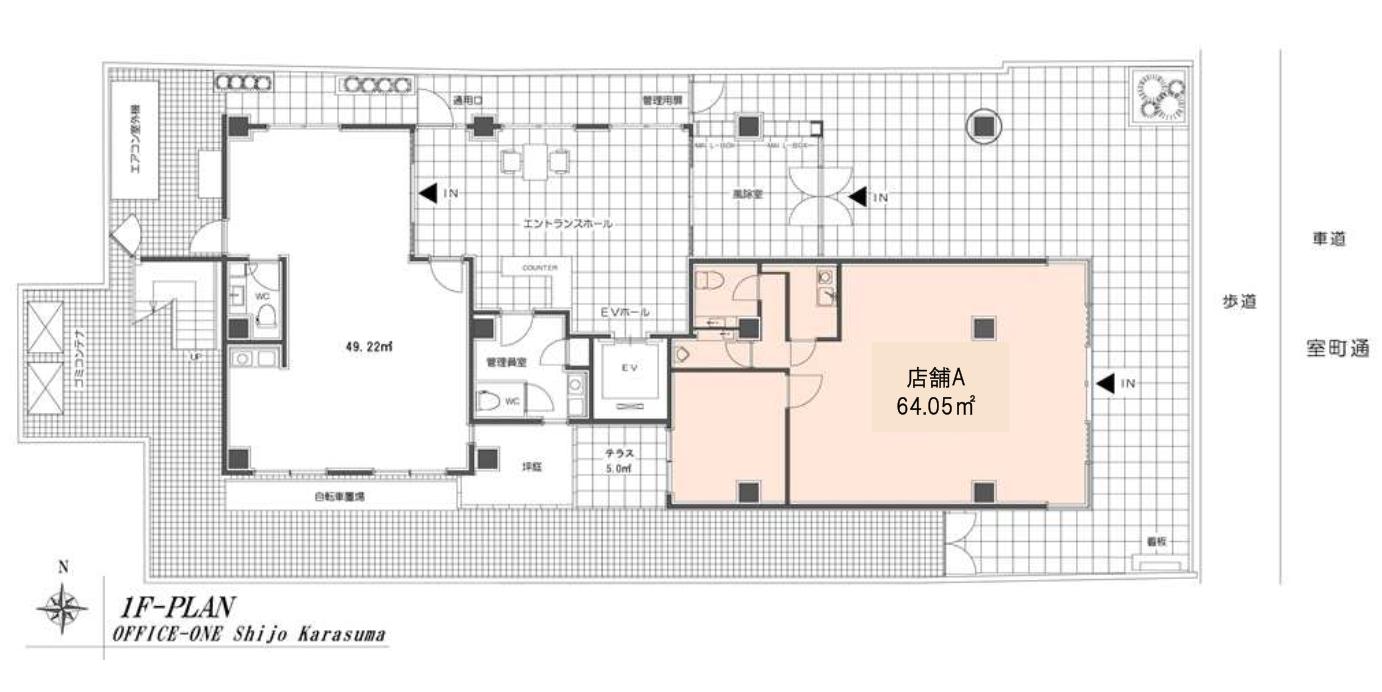 物件名:オフィスーワン四条烏丸(1F)