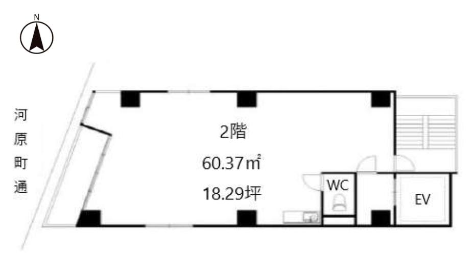 京阪「清水五条」駅から徒歩4分。 河原町通に面した立地にある、事務所仕様の2階区画です。 専有面積は約60.37m2(約18.29坪)。 室内はシンプルなワンフロアで、デスク配置やレイアウトを柔軟に検討しやすい形状です。 トイレは室内にあり、EVも備わっているため、来客のある業態でも使いやすい印象があります。 建物は地下1階付き・8階建てのビルで、河原町通沿いという分かりやすい場所に位置しています。 人の流れがあるエリアながら、2階ということで落ち着いた環境を確保しやすく、 士業・IT関連・デザイン事務所など、事務所利用を中心に検討しやすい区画です。 契約条件や内装の使い方については、現地を確認しながら相談可能。 立地と広さのバランスを重視したい方には、一度検討してみたい物件です。