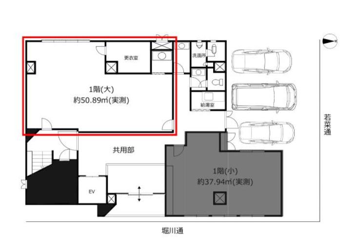 北区紫野エリア、堀川通に面したテナントビルの1階区画です。地下鉄烏丸線北大路駅から徒歩圏内に位置し、住宅と店舗が混在する落ち着いた環境にあります。SRC造5階建の1階部分で、専有面積は約50.89m2(約15.39坪)。賃料は14万円と、広さとのバランスを見ながら検討しやすい条件です。室内はシンプルなワンフロア構成で、用途に応じたレイアウトを考えやすい間取り。共用部には給湯室や男女別トイレが設けられており、日常利用のしやすさにも配慮されています。事務所や物販、サービス店舗など、幅広い用途で検討しやすい区画です。